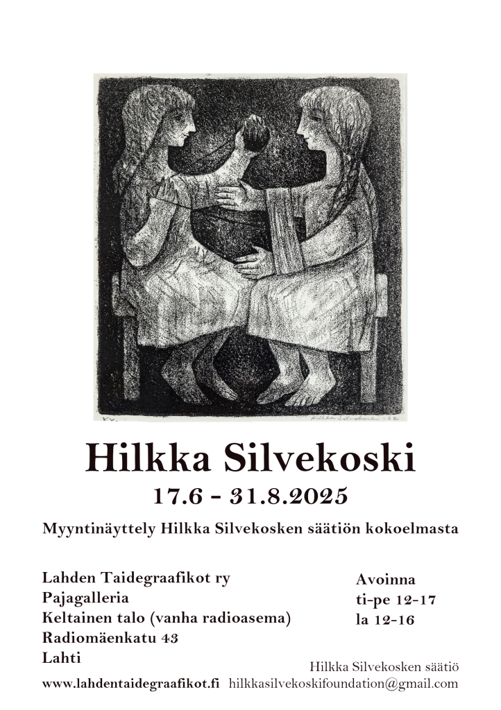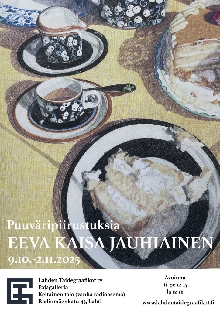 Lahden Taidegraafikot ry:n Pajagalleriassa Radiomäen Keltaisella talolla on esillä Eeva Kaisa Jauhiaisen puuväripiirustuksia vuosien varrelta.