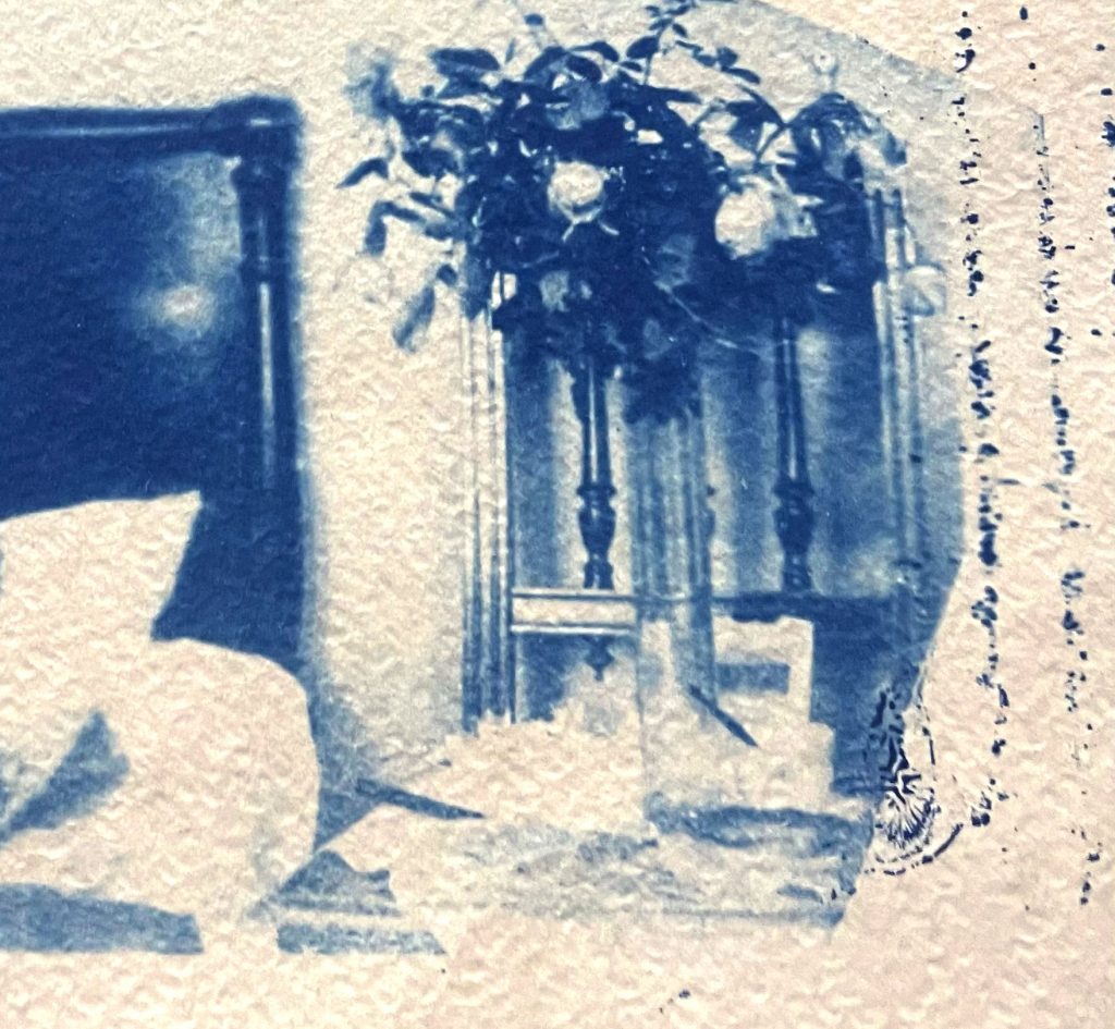 19.-20.8. klo 10-16 – ”Syanotypia”. Syanotypia on vanha, 1800-luvulta peräisin oleva valokuvien jalovedostustekniikka. Opettajat Annukka Visapää ja Alexandre Kallio. Hinta 40 € (sisältää materiaalikulut). Alla syanotypia-kuva.
