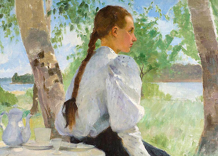 Ma 10.7. Suomen kuvataiteen päivänä klo 14.00 luento ’Maalaustaiteen kuningatar’. FT Leena Hannula kertoo Helene Schjerfbeckin muotokuviin liittyvistä tarinoista. Radiomäen Keltaisessa talossa akvarelli- ja piirustustyöpaja kaikenikäisille, mukaan omat työvälineet. Sään salliessa työskennellään myös ulkona. – Alla Helene Schjerfbeckin maalaus ’Tyttö hiekkakuopassa’.