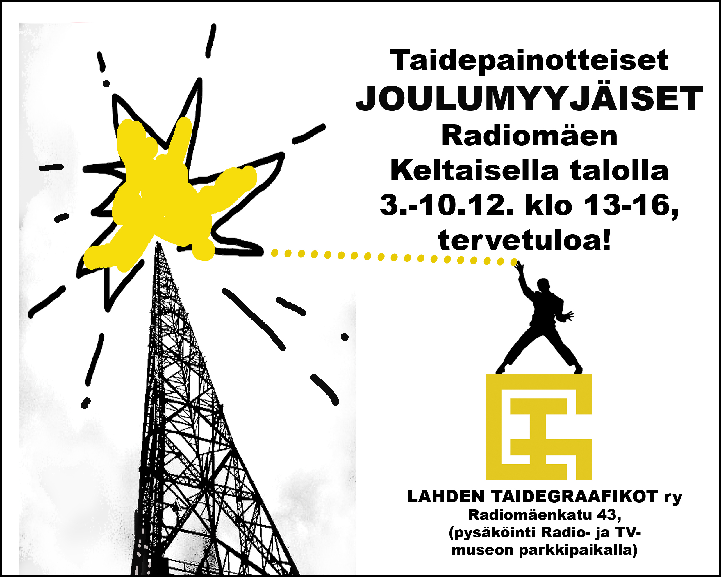 Hiihtolomaviikolle tekemistä TAIDEPAJA 7-10 -vuotiaille Lahden Pelastakaa Lapset ry @lahdenpelastakaalapsetry ja Lahden Taidegraafikot ry järjestävät taidepajan torstaina 27.2. ja perjantaina 28.2.2025 klo 10-14. Paja on maksuton. Mukaan otetaan 12 ensimmäisenä ilmoittautunutta 7-10 -vuotiasta lasta. Pajaan voi osallistua yhtenä tai kahtena päivänä. Tarvittavat työvälineet ja materiaalit saa pajalta. Päivien aikana tehdään monipuolisesti taidetta eri tekniikoilla. Taidepaja järjestetään luovassa ympäristössä Lahden Taidegraafikot ry:n pajalla Keltaisessa Talossa Radiomäellä, Radiomäenkatu 43. Päivän aikana pidetään evästauko, joten omia eväitä on hyvä olla mukana Ohjaajina toimivat kuvataiteilijat Eeva Kaisa Jauhiainen ja Tiina Salmi. Ilmoittautumiset jauheeva@gmail.com. Kerro ilmoittautuessa lapsen nimi ja ikä sekä osallistuuko hän yhtenä vai kahtena päivänä.